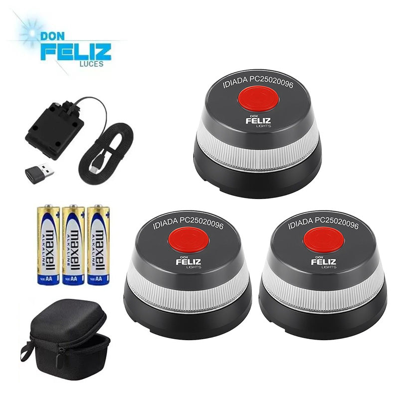 Señaliza tu vehículo sin bajar a la calzada. Alta visibilidad 360º + geolocalización automática al activarse.
